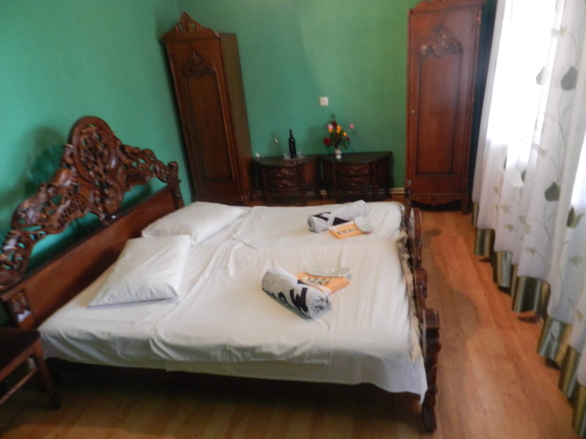 ゴニオにある広くて美しい2階建ての家です。自然の静けさと海風を楽しむことができます。ビーチまでの所要時間は2分以内です。お茶、コーヒー、ジョージアワインを飲める庭を見下ろすベランダがある一軒家の1階にあるワンルームマンションです。アパートには、すべての調理器具を備えたキッチン、仕事スペース、無料Wi-Fi、バスルームアメニティ、テレビがあります。
