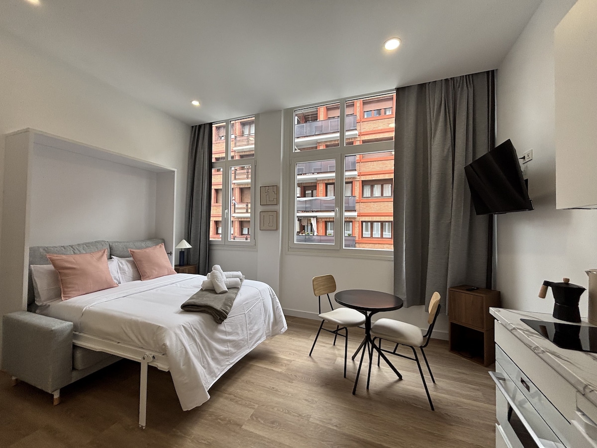 旧市街の魅力的な建物にある、全てのモダンな設備を備えた30平方メートルのスタジオ、エレベーターのない1階。ワンルームは、閉鎖されたバルコニーでも禁煙です。 コーヒー/紅茶、Wi-Fi、テレビ、洗濯機。 メインの玄関は私たちのアパートと共有されていますが、スタジオには鍵付きのドアがあり、プライベートで完全に独立しています。 徒歩5分のところに有料駐車場があります。 450件以上の5つ星評価。 バスク政府に登録されており、許可証番号LVI -0002 +アクティブNRU