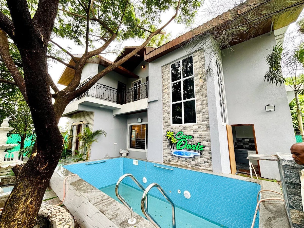ニルヴァーナヴィラヴァサイへようこそ! ハーフエーカーの4ベッドルームの豪華なバンガローは、元ポルトガルの植民地であるヴァサイ(西)の中心部に位置しています。パーティーやリラックスした週末の休暇に最適です。私たちの物件には、大きな造園された庭園、美しいプール、広々とした駐車場、小さな個人用オーガニック農場もあります。 家族の集まり、友達とのパーティー、オフィスのお出かけに最適です。最大25〜30名様まで快適にご宿泊いただけます。 私たちのアメニティ、スペース、そして家庭的な環境が、あなたの滞在を思い出に残るものにします!