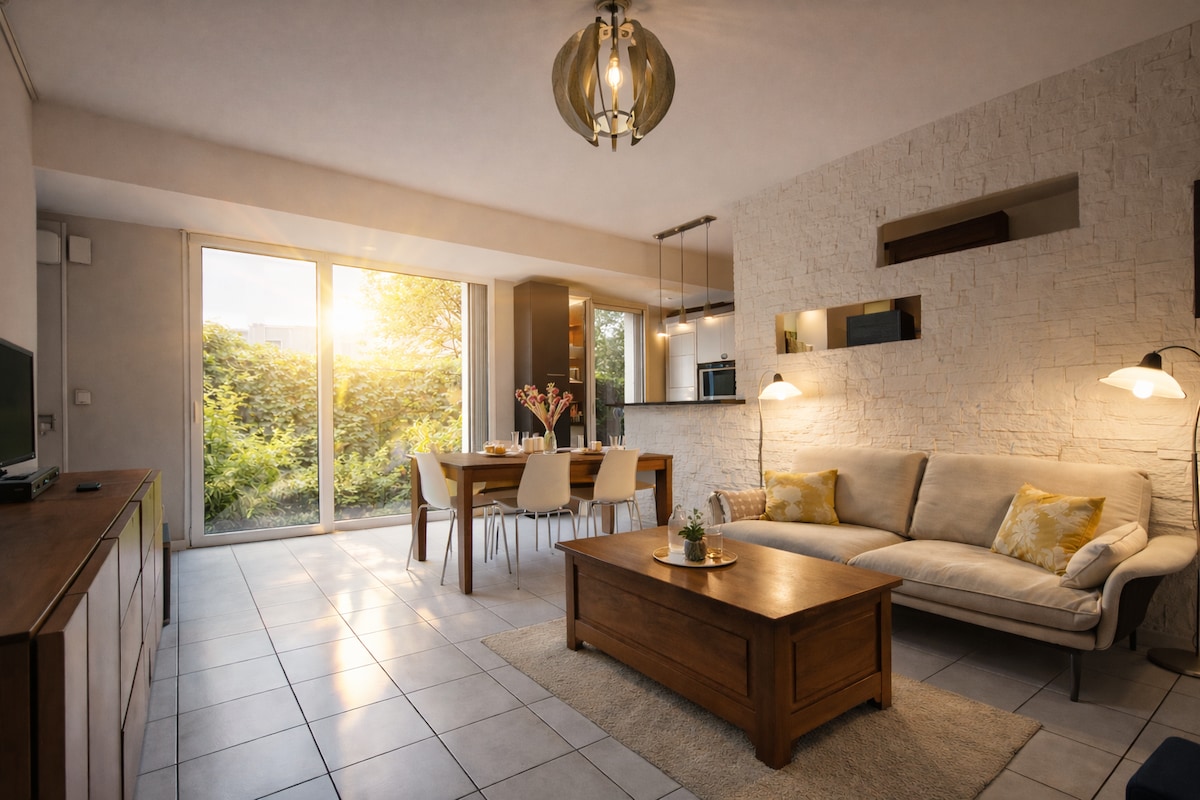 ナントの玄関口にあるサン・テールブランの独立したエアコン付きの35m²の家は、完全に改装されており、ゲストをお迎えすることができます。50m²の囲まれた庭園。 静かで、ナントに近い(ナント駅まで電車で9分)ので便利です。 ゼニスアリーナに近く、CFAとAFPAから5分、ラ・ボールのビーチまで車で45分、ナント・アトランティック空港から10分。ナントの旅に理想的なロケーション。 Wi - Fiアクセス。通りに無料の駐車場があります。