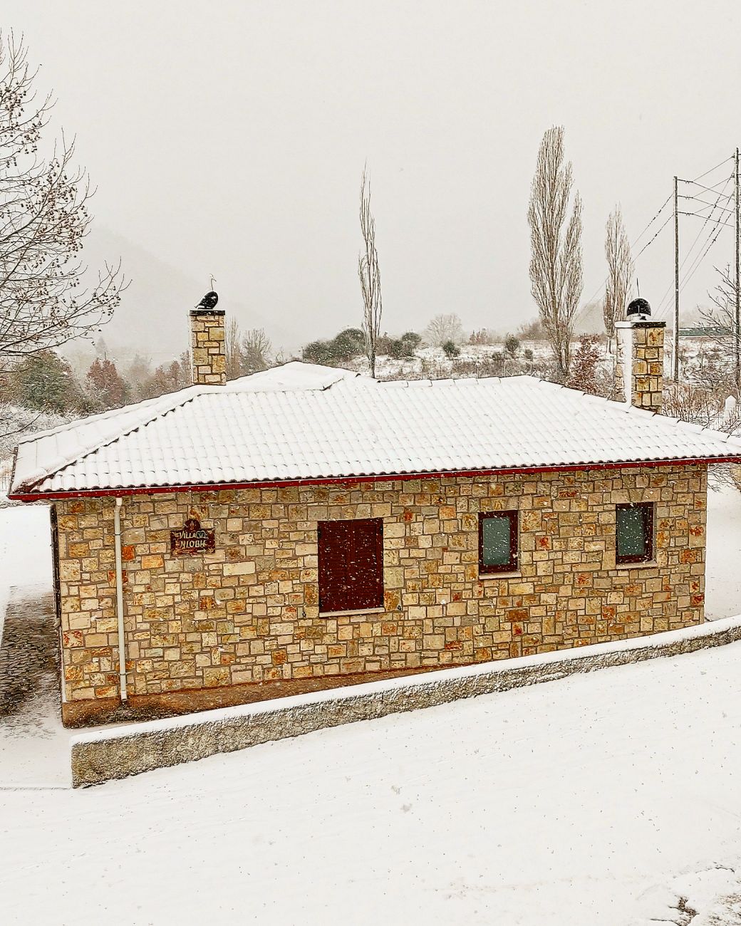 トリホニダ湖の素晴らしい景色を望む石造りのコテージ