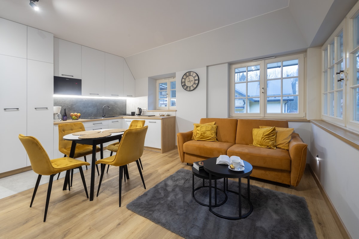 クリニツァの中心部に位置する美しく新しいアパートは、有名な遊歩道のすぐ隣にあり、街のパノラマ、山、スキー場の素晴らしい景色を眺めることができます。オリジナルのインテリアと快適な滞在条件を提供しています。43平方メートルの面積を持つアートスタイルのデザイナーアパートメントには、キッチン、広々としたバスルーム、独立したトイレ、バルコニー、無料の地下駐車場、スキー室、自転車室があります。 快適さのために; - Netflix、SMART TV、Wi-FI - 迅速なチェックイン - 安全。