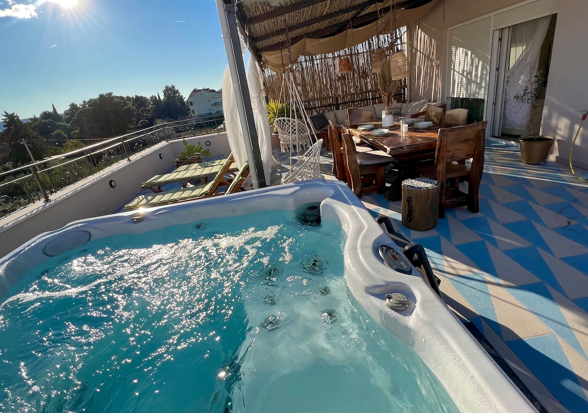 ヴィラ・ティッサ、専用温水プールとジャグジー付き
