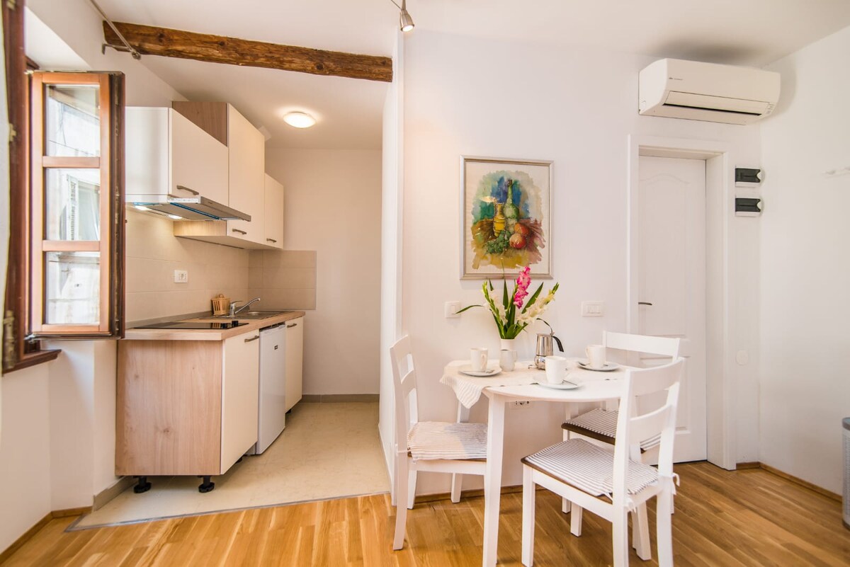 Welcome to your cozy Rovinj getaway! This charming, newly renovated ground-floor studio is set in a 200+ year-old stone house, thoughtfully restored to preserve its historic character while offering modern comfort. Located in the heart of a vibrant and authentic neighborhood, youâll be just steps away from Rovinjâs best restaurants, cafés, and bars. Wander through picturesque streets, soak in the local atmosphere, and experience the true spirit of the old town.
