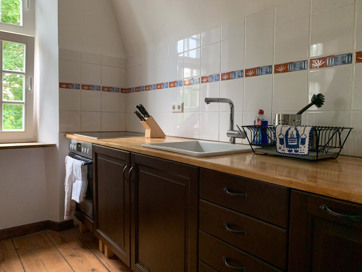 Das Herrenhaus bietet mit seinen charmanten Ferienwohnungen und den liebevoll gestalteten repräsentativen Räumen einen unvergesslichen Aufenthalt. Genießen Sie Ihren Aufenthalt in der liebevoll eingerichteten und großzügigen Suite Georg. Die Suite, benannt nach dem letzten Hausherren, verfügt mit ihren 85m² über zwei Schlafzimmer, eine große Wohnküche und ein Badezimmer mit Dusche und freistehender Badewanne. Von hier aus können Sie ihren Blick über den gesamten Gutspark schweifen lassen.