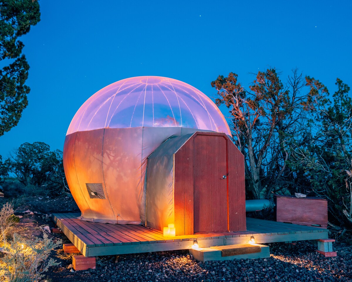 Airbnbで予約可能な最も魅力的なバブルのひとつ、星空を眺めることができるバブルに泊まって、一生に一度の体験をしましょう!「まるで本物のプラネタリウムで眠っているようだ」とゲストに好評です!ベッドで眠りにつく前に流れ星を眺めましょう。 グランドキャニオンまで30分 ウィリアムズのダウンタウンまで35分 20エーカーの人里離れた宿泊施設を他のバブル1つと共有 - バブルには1時間に10回空気をリサイクルする送風機があります 夜は寒くなります。追加の毛布をご用意しており、ベッドには加熱マットレスパッドが付いています。