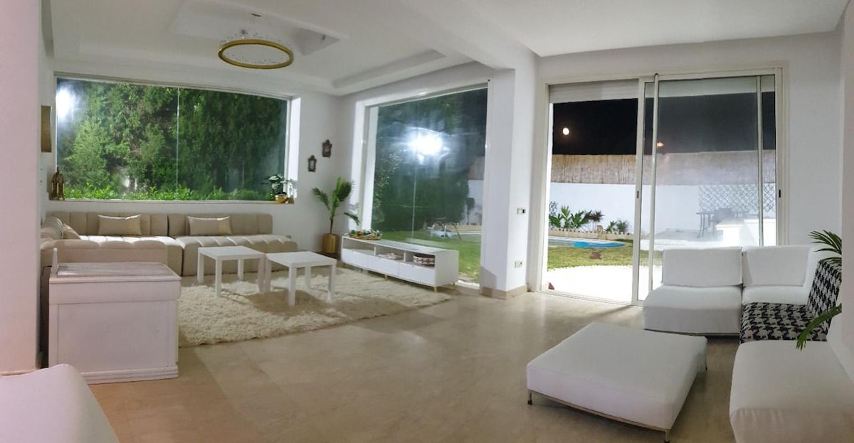 ブスクーラ・ゴルフシティに位置するこの住宅は、洗練と静寂を兼ね備えています。広々とした明るい内装は、高級感のある仕上がりで、くつろぎの時間をお過ごしいただけます。外部には、静かなオアシスのような専用の庭とプールがあります。近くには複数のショッピングセンターがあり、有名なゴルフ場もすぐそこです。無料駐車場もご利用いただけます。安全性、豪華さ、快適さが融合した場所で、忘れられない滞在をお楽しみいただけます。