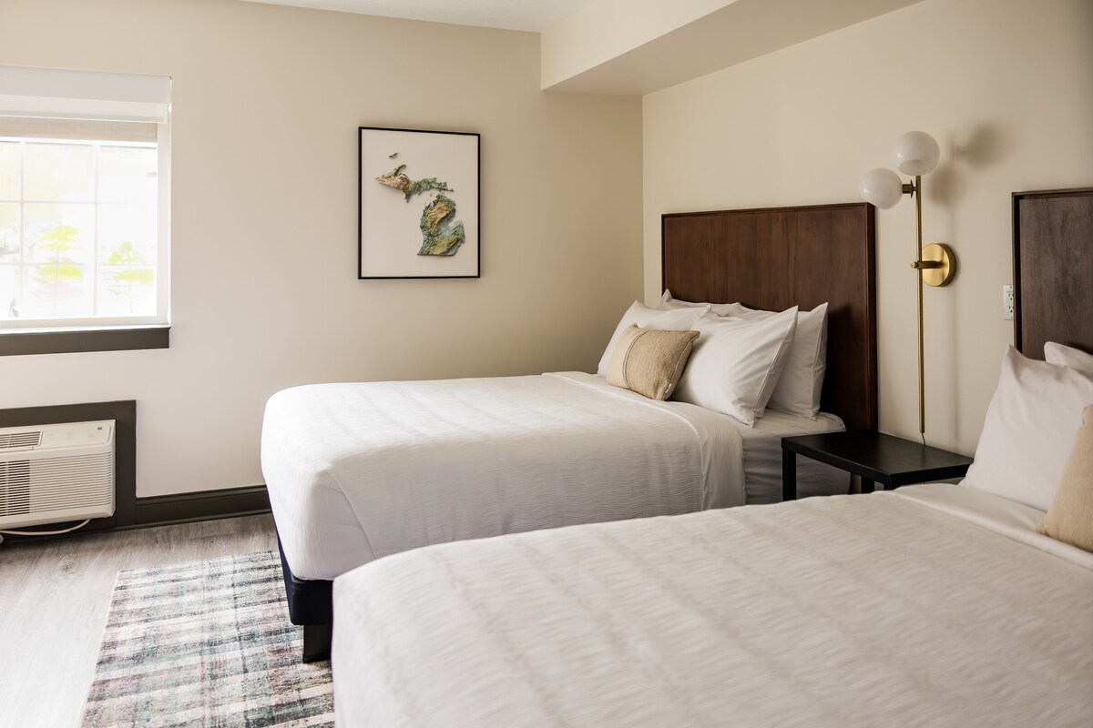 グランド・トラバース・ベイからわずか数歩、ダウンタウンのショップ、レストラン、醸造所から数分の場所にある、モダンな快適さと素朴な魅力が融合したThe Vicを体験してください。美しく改装された建物には、考え抜かれたデザインの客室、無料駐車場、フィットネスセンターがあります。楽しくリラックスした滞在を求めるカップル、ご家族、お友達、または一人旅の旅行者に最適です。テクノロジーを活用した宿泊施設では、バーチャルフロントデスクを通じて午後4時にセルフチェックインが可能で、テキストメッセージによる24時間365日対応のゲストサポートを提供しています。