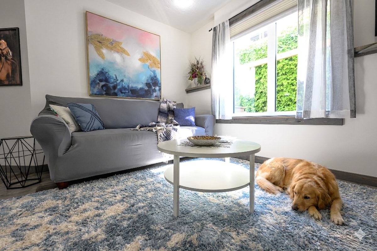 Welcome to Aces-High Pinnacle Ridge Ranch - the perfect place to kick off your boots, hang up your hat, and unwind! This charming, well-equipped walkout retreat invites you to soak up natural light through expansive windows, read your favourite book, and enjoy the peace of your own private terrace and covered entrance. Whether you're looking to work remotely, relax or adjust to the city, this space offers it all and yes, we're dog-friendly too!