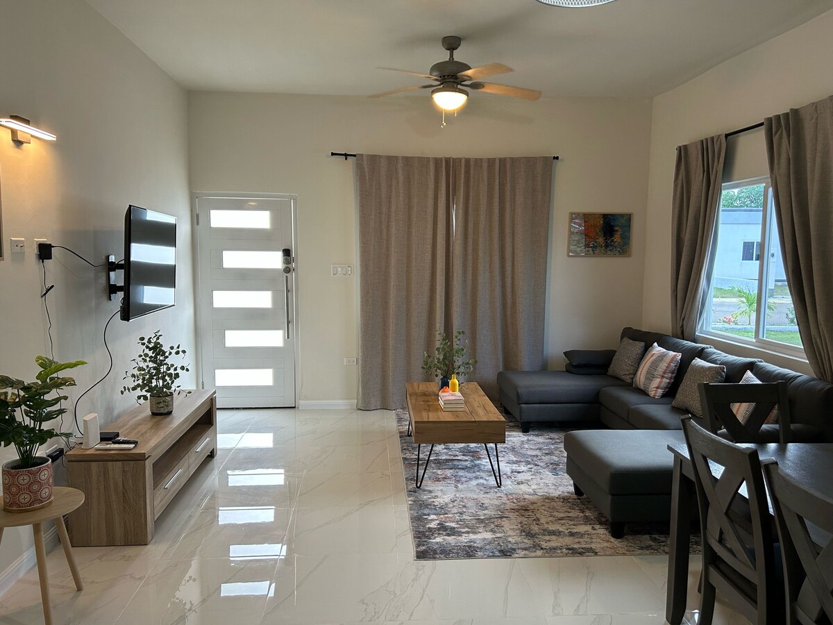 プライベートで居心地の良い2ベッドルーム、2バスルーム、キッチン、ランドリー、リビング、ダイニングルームのある家で、自宅のようにくつろげます。この最近建てられた家は、新しいモダンなゲート付きコミュニティにあります。寝室とリビングルームの両方にエアコンと天井ファン、太陽光発電と温水、貯水タンク、Starlinkインターネット、花崗岩のキッチンと浴室のカウンタートップ、洗濯機、乾燥機、引き戸クローゼット、裏手のフェンス、大きなパティオ、車道、オープンフロアプラン。これらは多くの機能の一部です。