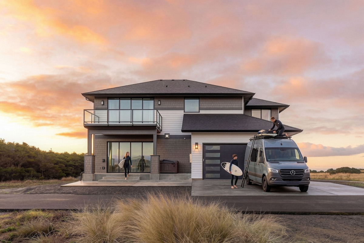 オーシャンビューとゴージャスな夕日を眺めながらリプタイド・リトリートでくつろぎましょう!オーシャンショアーズとシーブルックの間の2エーカーのプライベートエリアに位置しています。 季節限定(夏/秋のみ)のビーチ散歩道。小道と砂丘では、すべての自転車/電動車両は厳しく禁止されています。公共ビーチの入り口まで車で2分です。設備の整ったキッチン、犬用のフェンス付き庭、プロパンガスグリル、大きなデッキ、リクライニングソファ、電気暖炉、スマートテレビ、Keurig、2つのPack 'n Play、ランドリールーム、ビーチ用のおもちゃなどをお楽しみください。ガレージには小型車を2台駐車できます。