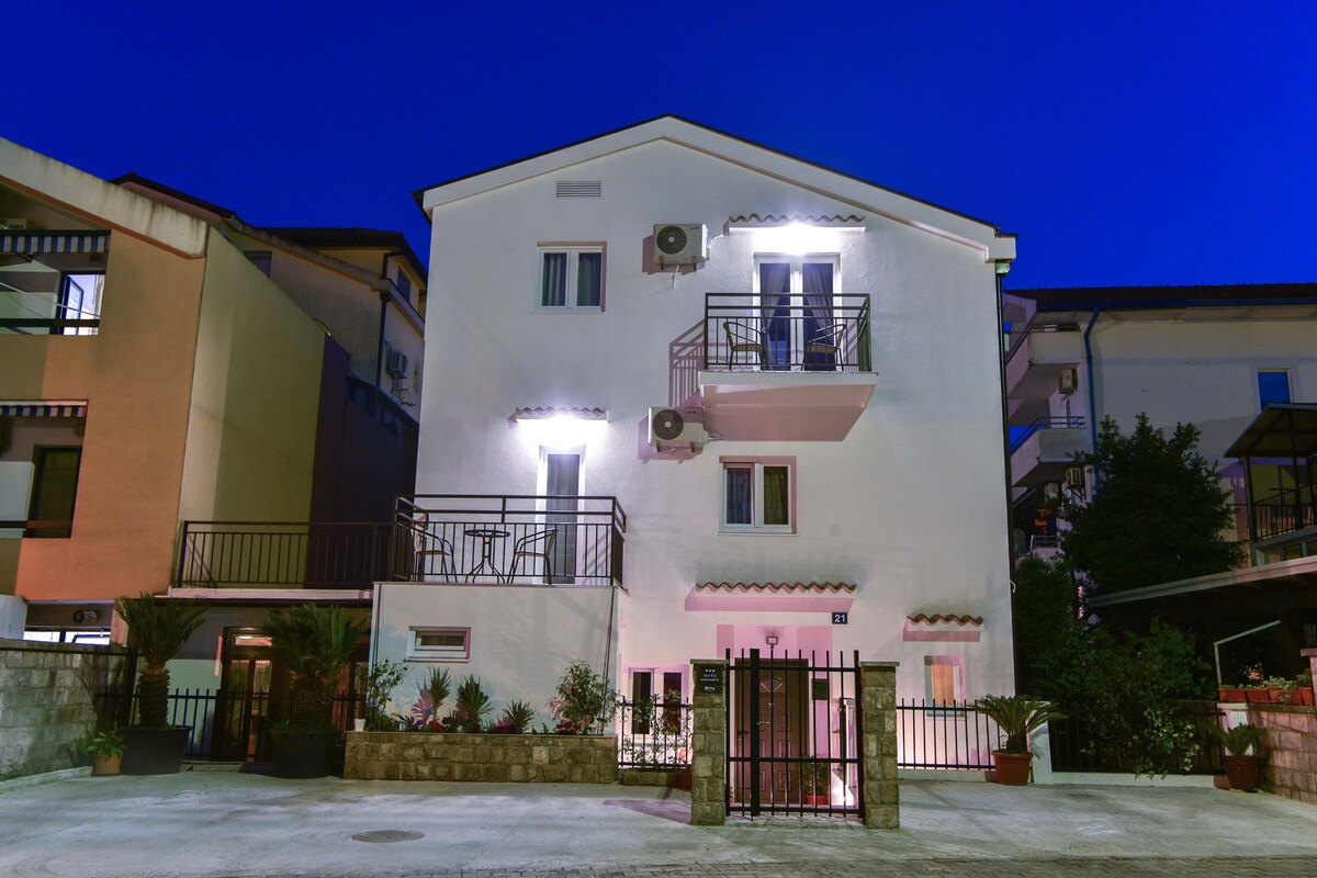 ブドヴァで美しい休日を過ごしたい方には、私たちの家が最適です。私たちの家はブドヴァの静かなエリアにあり、旧市街から徒歩10分、最寄りのビーチから7分、メインのバス停からわずか数分です。最寄りの環境には、2つの市場、アジア料理のレストラン、ラウンジバー、ヘアスタジオ、スポーツ場があります。すべての宿泊施設には、専用のバスルーム、必要なものがすべて揃ったキッチン、エアコン、Wi - Fi信号、ケーブルテレビが備わっています。清潔なタオル、シーツ、トイレットペーパー、石鹸はいつでも交換できます。