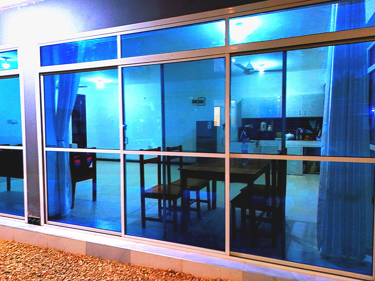 ご家族連れや出張者に最適なこの宿泊先は、まさにお探しの宿泊先です。 静かで穏やかなエリアにある美しい3ベッドルームの家です。 足を踏み入れた瞬間から、くつろげます。快適な滞在をお過ごしいただけるよう、アメニティ・設備が揃っています。 寝室は広々としており、各寝室に専用の浴室があります。 屋外は美しい環境です。リラックスして新鮮な空気を楽しんでください! 午後6時から午前7時まで警備員がいますので、セキュリティは保証されています。 きっと気に入っていただけるはずです!