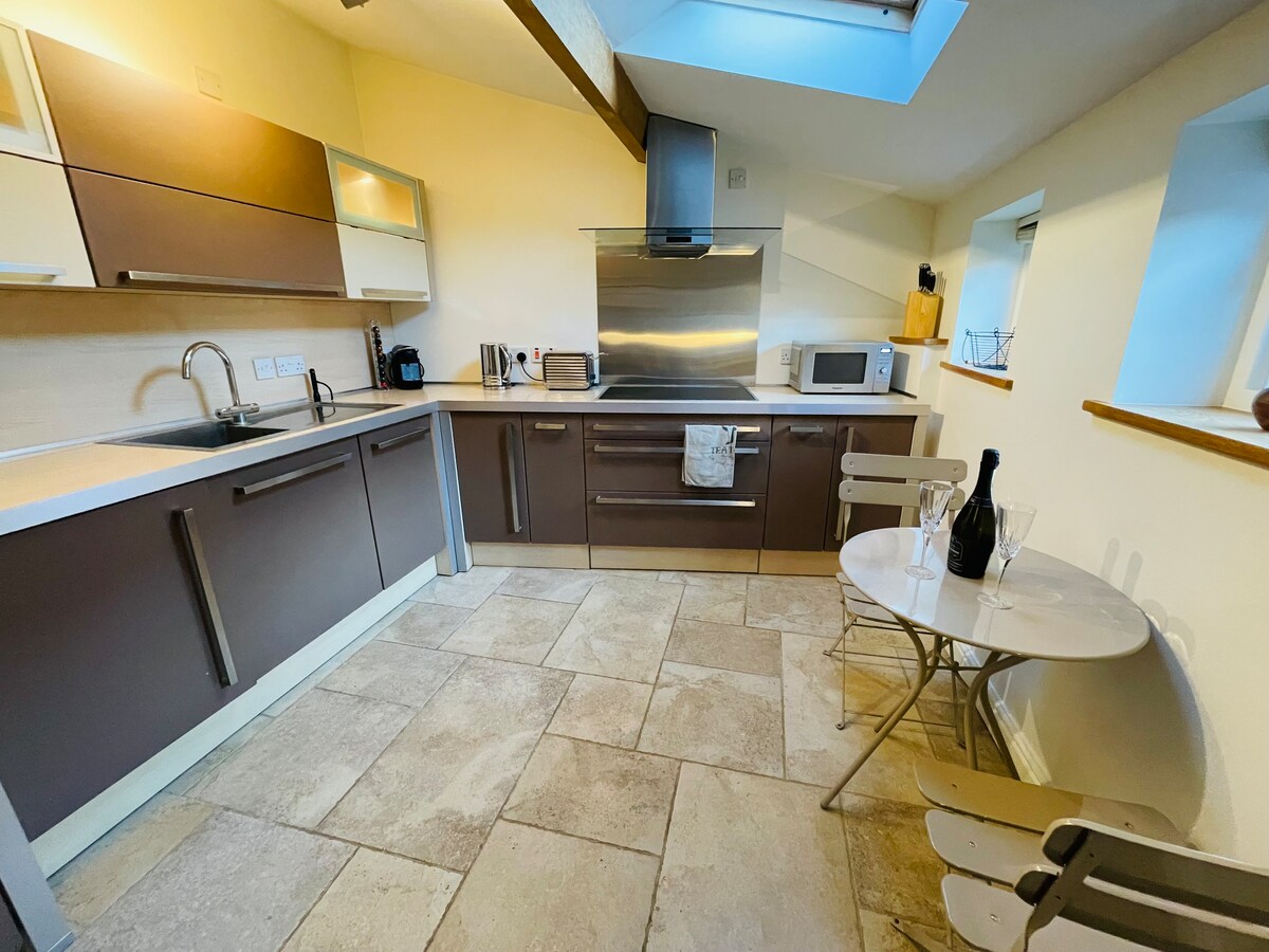 Our charming rural retreat has flexible accommodation for 6/7 adults PLUS small children. Modern kitchen & bathroom. Private staircases lead to Bedroom 1 - double bed + single Zedbed on request. Bedroom 2 - twin beds. En-suite WCs to both. The Garden Room is EITHER Bedroom 3 (with kingsize bed OR 2 singles) OR an additional sitting room. Travel Cot available. Sitting Room has a log burner for WINTER evenings. Secure, private, sunny rear garden with lawn and patios.