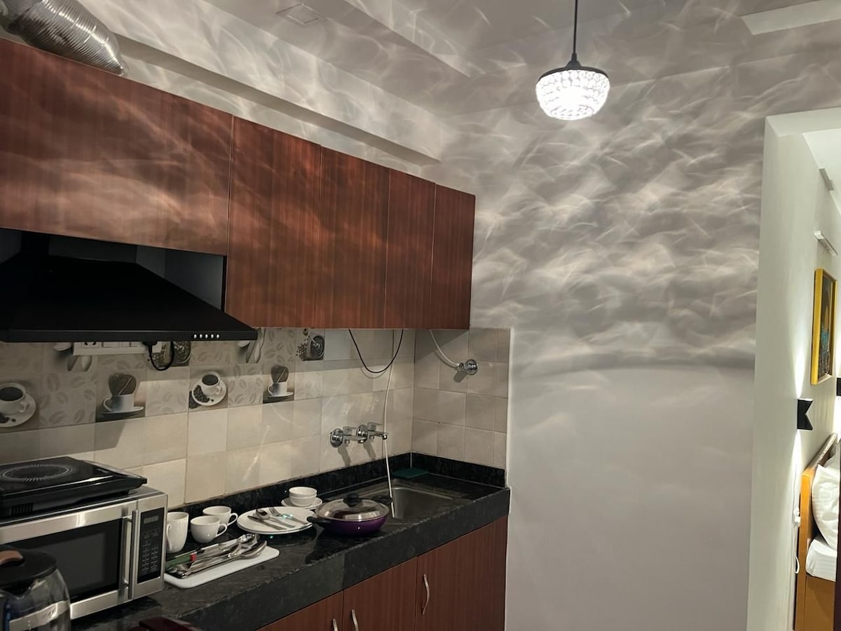グルガオンのセクター43にあるプレミアム1BHKサービスアパートメント。リビングルームとベッドルームにエアコン、簡易キッチンにはIH、電子レンジ、カトラリーが備わっています。ゴールドスークモールとシャロムヒルズスクールまで徒歩圏内の高級エリアにあり、ミレニアムシティセンターメトロから2.2 km、フォーティス病院から2.1 kmです。外国人ゲストも大歓迎です。アーリーチェックインは空室状況により、500ルピーの料金がかかります。また、レイトチェックアウトも同様に、3時間ごとに500ルピーが追加されます。