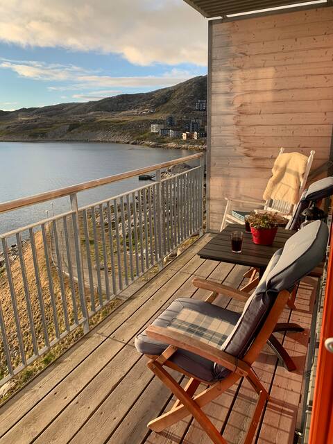 この宿泊施設は、イルリサットで最高のロケーションの一つにあり、すぐ外の海の音とイルリサットの氷河の香りを楽しむことができます。イルリサットの氷河の景色が見え、家からは近くの港から出航する船も見えます。運が良ければ、夏の間にリビングルームと寝室の両方からクジラを見ることができます。 宿泊施設は街の中心部にありますが、騒音のない小さなエリアにあります。氷山の間で泳ぐ場合は、冬の海水浴に簡単にアクセスできます。