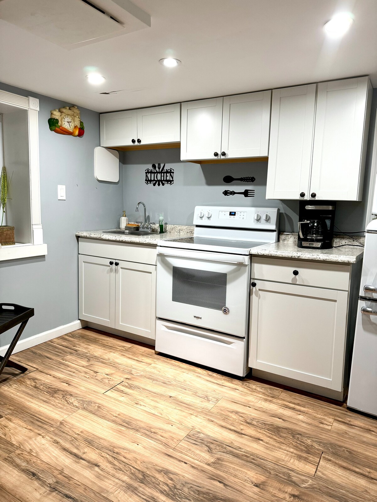 地下にある新しく改装されたプライベートスイートには、専用の入り口とバスルームがあります。キングサイズベッドには2名様までお休みいただけます。スマート照明器具と電動ソファリクライニングチェアで快適さを高めます。軽食エリアには電子レンジ、冷蔵庫、ミニトースター、電気ケトル、キューリグが備わっています。 ノースウェル病院に近く、LIRR駅まで徒歩20分。すべてのスーパーマーケット、ショップ、図書館、ステッピングストーンパークまで車で10分。 ホストは猫と犬に強いアレルギーがあります。ペット同伴禁止!