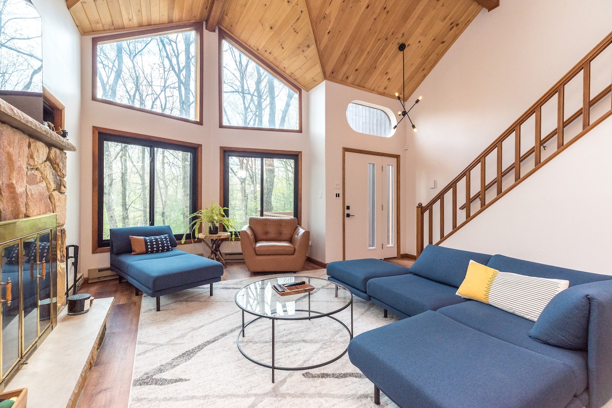 この魅力的な三角屋根の家はキャッツキル山脈にあり、ロンドウト貯水池の季節の景色を眺めることができます。 この家は素朴な魅力を持ち、居心地の良い雰囲気で、自然に逃避したい人に最適な宿泊先です。 アウトドア愛好家は、地元の多くのハイキングコースを楽しむことができます。モホンク自然保護区、サムズポイント、ミネワスカなどの人気エリアからわずか25分です。 ヤギの保護区で、動物愛好家の方は30匹以上の保護されたヤギ、ニワトリ、犬、そしてもちろん地元の野生動物を訪問できます。