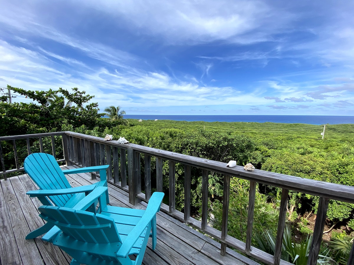 Welcome to our newly-built Sky Domek located on the top of a hill in Oleander Garden near Gregory Town. The minute you drive up you will be amazed by the 180-degree water-views and rolling lands surrounding our house. You can enjoy your morning coffee while taking in the sea on the back deck and in the evening you can enjoy the breezy shade, a drink and an amazing view of the sunset from the front deck. After an exhausting day at the beach, you can relax in a hammock nestled among the trees.