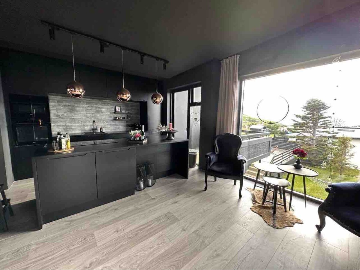 エイヤフィヨルズルのフィヨルドに面した広々としたオープンスペースロフトからは、山と海の絶景を一望できます。 設備の整ったキッチン、快適なキングサイズベッド2台、床暖房付きバスルーム、広いオープンダイニング/シッティングエリアをお楽しみください。 専用の玄関とキーボックスがあり、チェックインとチェックアウトが簡単です。