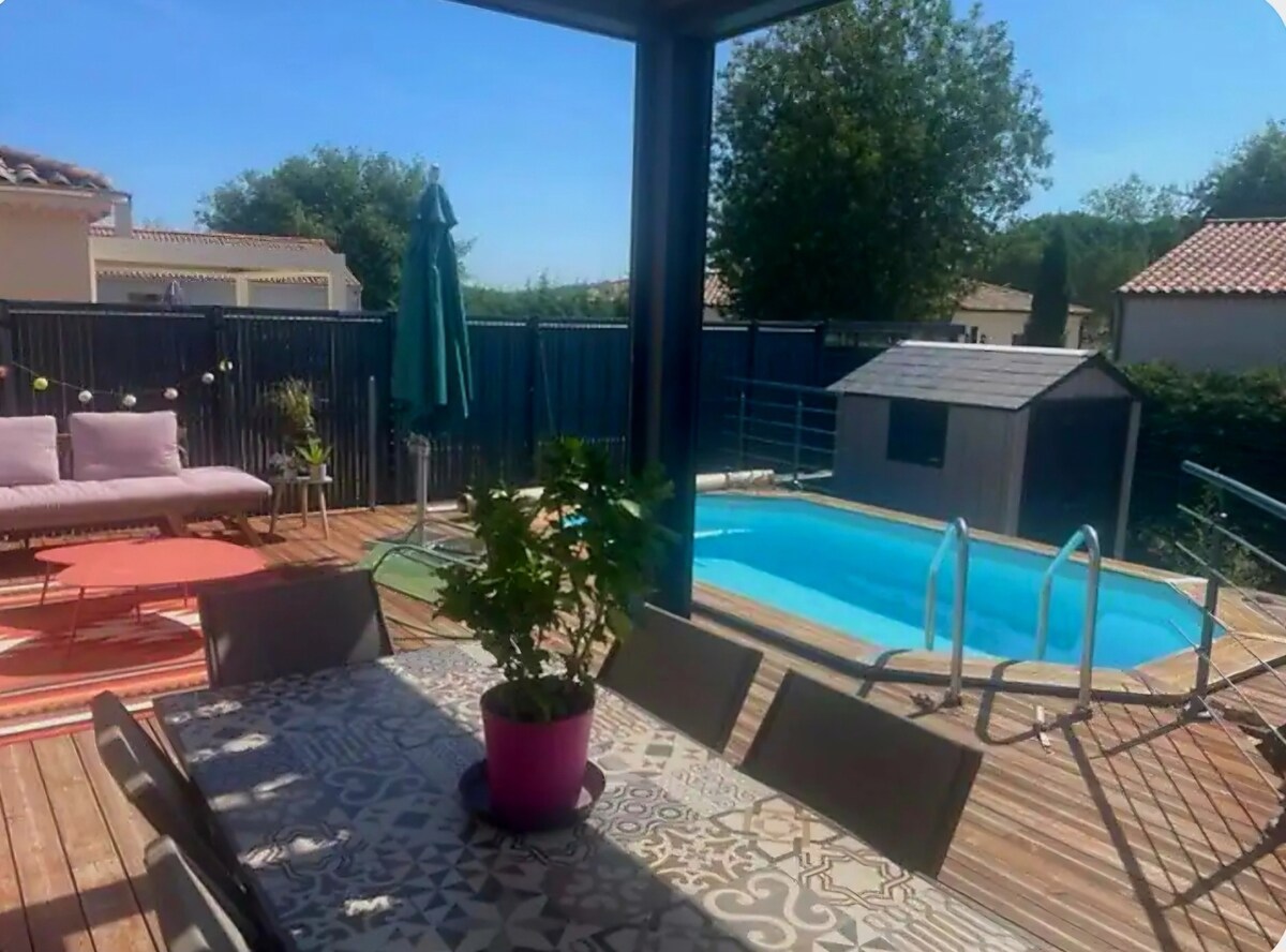 レビュー36件、5つ星中4.89つ星の平均評価魅力的な80平方メートルの別荘、プール、ウゼスの近く。