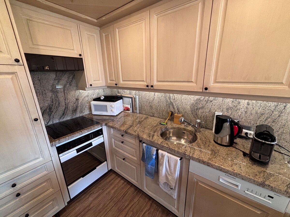 山の景色と暖炉が楽しめる快適なアパート