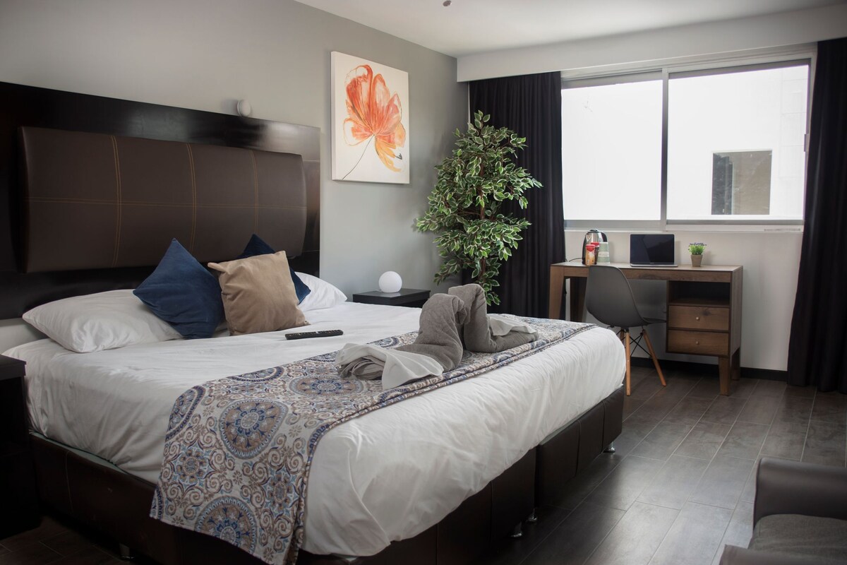 Disfruta de nuestros alojamientos diseñados especialmente para que tengas la mejor estadía en tu visita a Guadalajara. Es una propiedad recién remodelada, cuenta con 8 estudios y una agradable terraza. Nuestro estudio, cuenta con su amplio baño completo, una cómoda cama matrimonial su smart Tv y una cocineta equipada, con acabados de lujo. Espacios limpios y un diseño que te invitará a relajarte y descansar, además de disfrutar una de las mejores zonas de la ciudad.