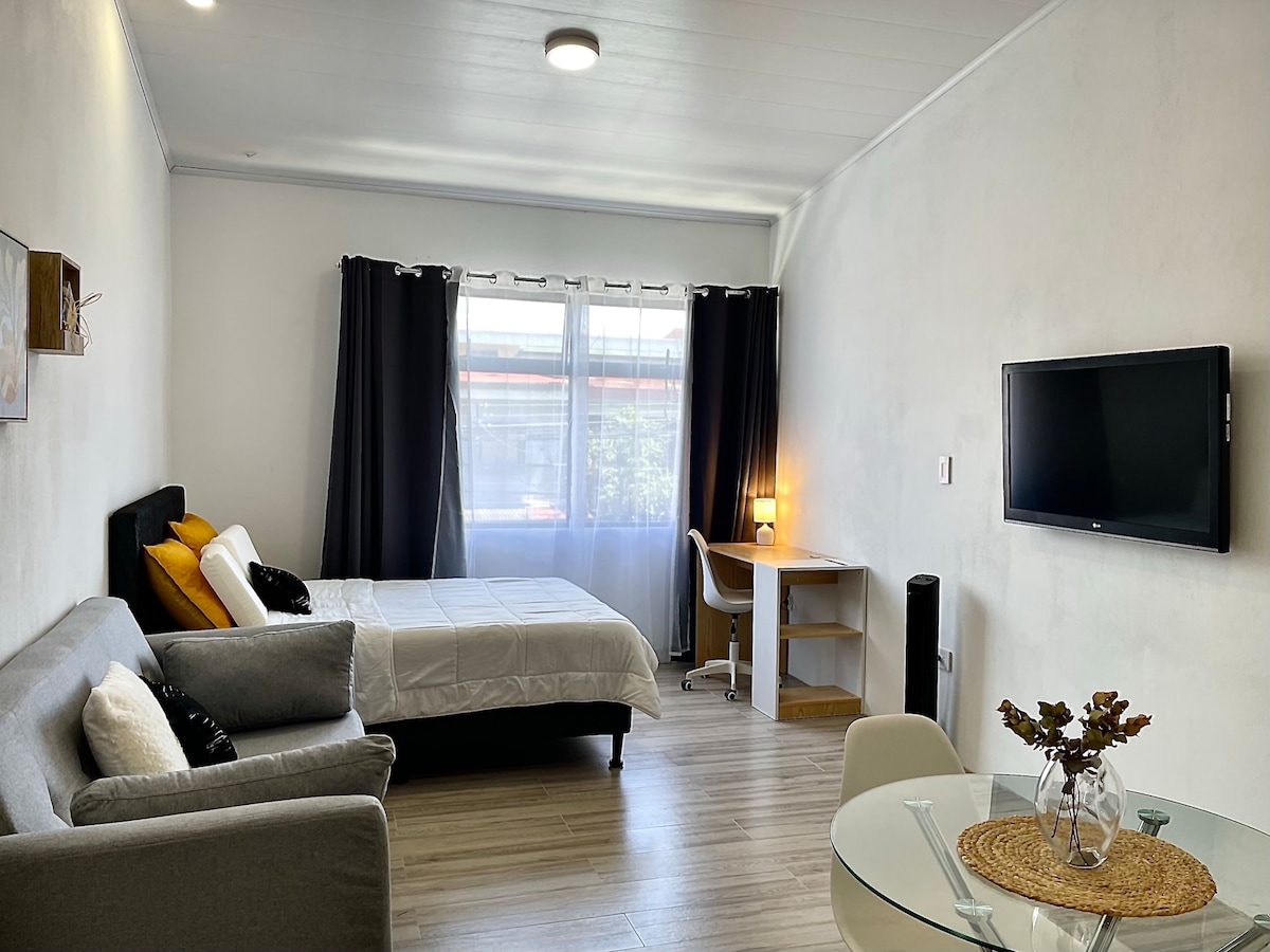 San Rafael de Heredia, La Suiza ,cerca autodecoracion TEA silencioso entrada por garage subir 12 gradas, sala comedor cocina concepto abierto, dormitorios con ventilador y pantalla Smart, HDMI, cable , sala y habitacion principal hab. Ind. Cable ,cuarto de pila lavadora autómat, tendero closet dentro del apto , ventilación fresco ventanas abrir iluminación natural sensación de paz muy íntimo tranquilo super seguro, a 25 min. Aeropuerto