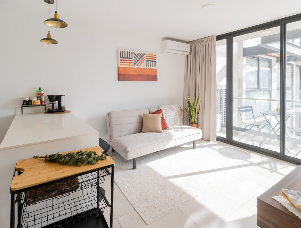 Acogedor apartamento de dos cuartos con terraza.