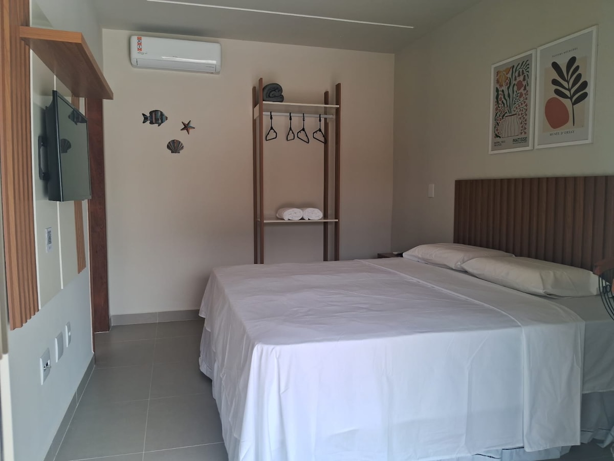 エスピリトサント州ヴィラ・ヴェーリャのノヴァ・ポンタ・ダ・フルタビーチの砂浜から150mの、Wi-Fi完備のビーチハウスでの宿泊。 大人も子供も楽しめるビーチ。 家族向けの環境。3つの寝室(2つのスイート)があります。テレビ1台(リビングルームに1台)、ミニバー2台、全室にシーリングファン、洗濯機、電子レンジ、温水シャワー、冷蔵庫と冷凍庫、エアフライヤー、電気オーブン、グルメバーベキューエリア。 基本的な寝間着セットをご用意しています:バスタオルとフェイスタオル、シーツとブランケット、テーブルリネンとキッチンリネン。
