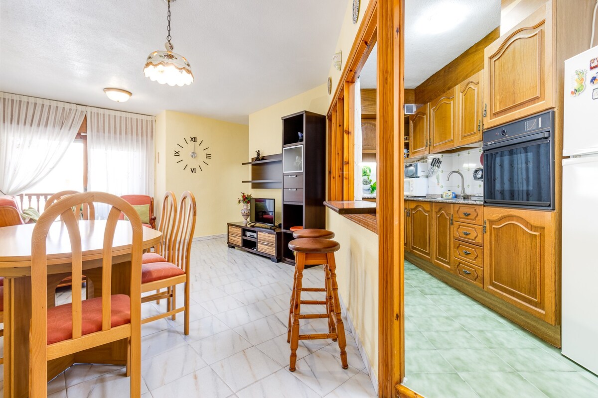 素晴らしいアパートは町で最も望ましいエリアにあり、ガレージに駐車場、エアコン、インターネット300 Mb、Wi - Fi無料、スマートテレビがあります。 細かい白い砂浜と遊歩道のビーチからわずか50メートルの場所にあります。 すべてのサービス、スーパーマーケット、Mercadona、その他のショップ、レストラン、バー、壮大な公園「Reina Sofía」、大きなパインパーク「Alfonso XIII」に近く、ウォーキングやサイクリング、テニスコート、市営プールがあります。