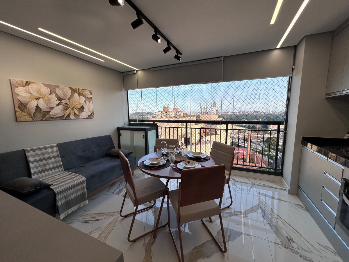 快適で便利な居心地の良いスタジオで、景色が美しく、素晴らしい滞在に必要なものがすべて近くにあります。 カップル、一人旅の方、レジャー/ビジネスに最適です。最大4名様まで収容可能な構造(クイーンベッド+ソファベッド)。 市場、薬局、パン屋、ショッピング。 車でお越しの方は、駐車場があります! グアルーリョス空港(GRU)から車で10分、ショッピングモールから5分。 ドゥトラとマルジナイスへのアクセスが簡単です。 アウトドア活動のための市民の森の近く。