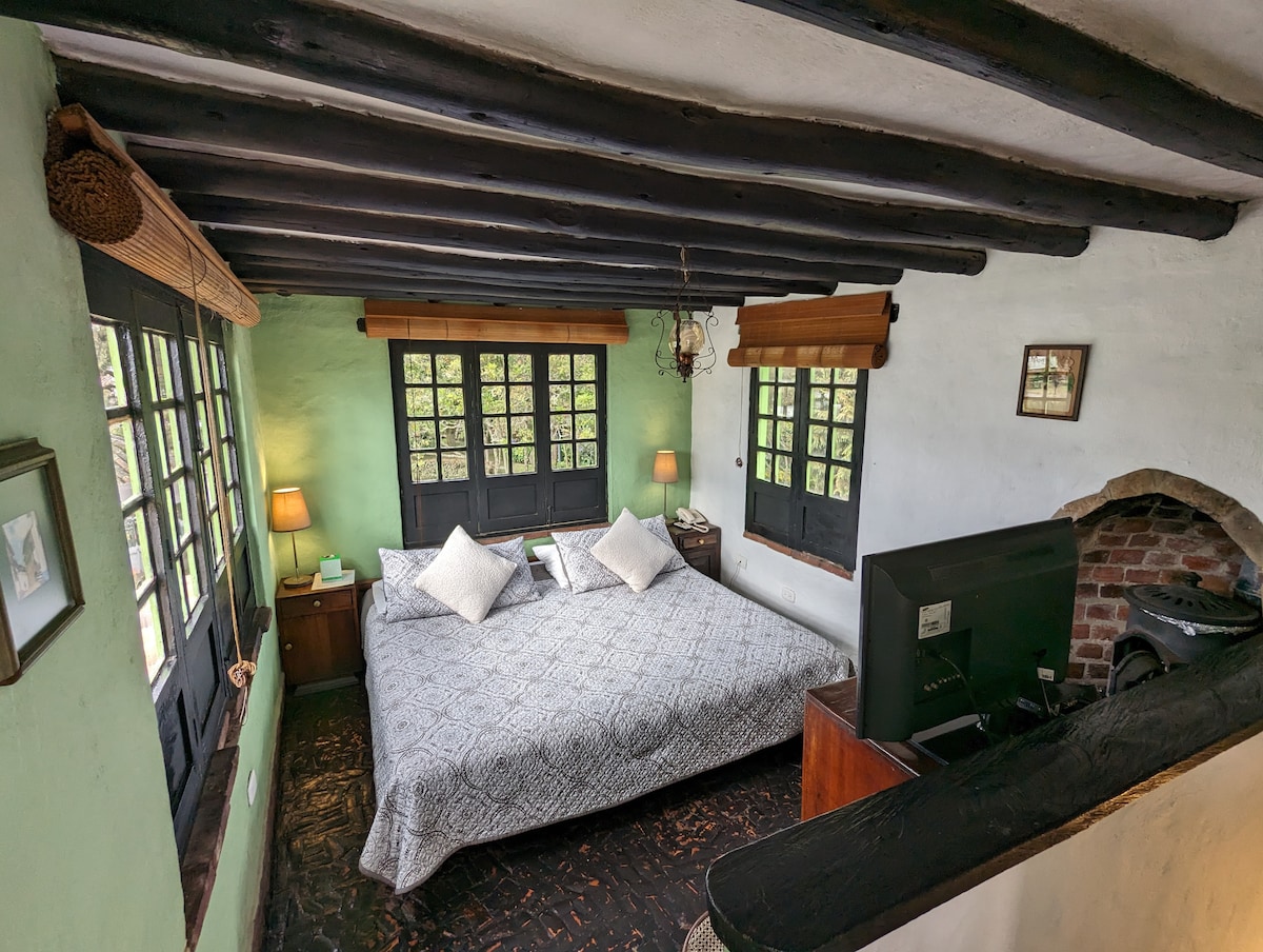 グアタビタ村から車でわずか5分のところにあるキングサイズベッドとジャグジー付きのお部屋です。 スイートには、駐車場、ダムの眺め、キングサイズベッド、ソファ、シャンプー、石鹸、タオル、バスローブ、清潔なシーツを備えた専用バスルームが含まれています。