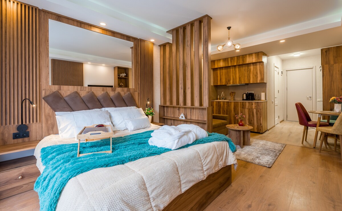 ゲストの皆様、素晴らしい山の景色を望む快適で豪華なアパートに滞在したい方、スキーロフト、ミニマーケット、レストランまで徒歩1分の場所にある方には最高の宿泊先です。アパートには、滞在中に必要なものがすべて揃っています。アパートには、Wi-Fi、スマートテレビ、クイーンサイズベッド、折りたたみソファ、フルキッチン、ヘアドライヤー付きバスルームなどが備わっています。さらに、アパートの目の前にスキーリンクがあります。迷う必要はありません。今すぐ予約しましょう。