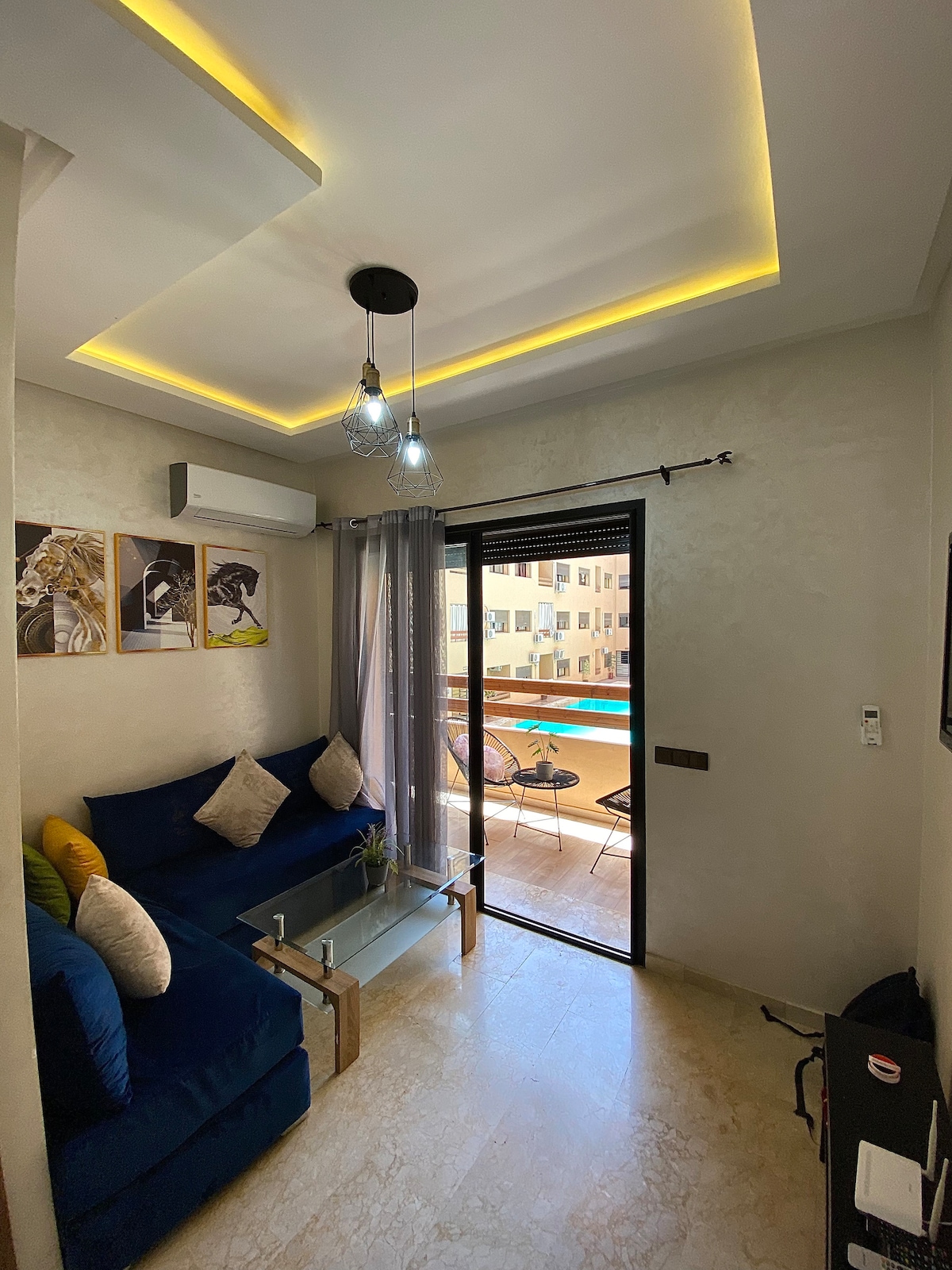 マラケシュの中心部、ゲリーズの中心部に位置する、テラスとプールを備えた72平方メートルのモダンで快適なアパートメント。 カレ・エデン・ショッピングセンターから徒歩10分、空港からタクシーで15分です。マジョレーユの美しい庭園とイブ・サンローラン美術館は徒歩10分です。 屋上プールは建物の住民のみが利用できます。 このアパートは独立したプライベートなアパートで、Netflix HD/IPTVと100mb/sの光ファイバーが完備されています。