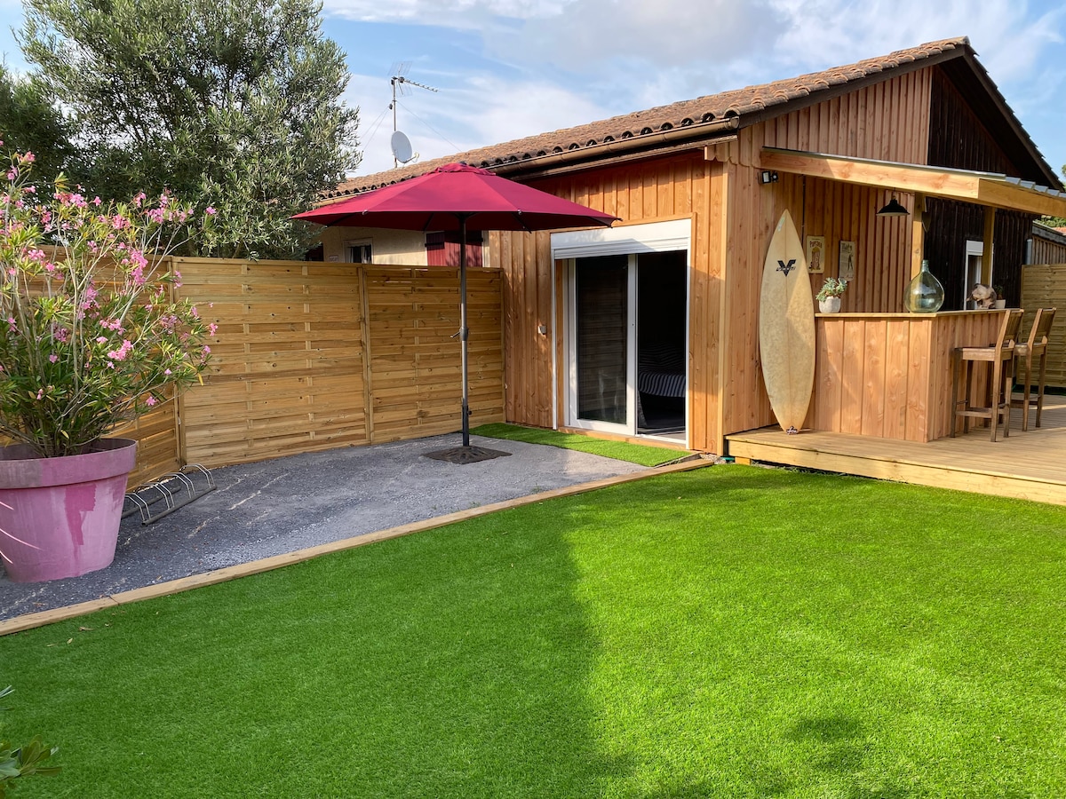 プールサイドの静かでエレガントな宿泊施設でリラックスしてください。緑豊かな庭園にあるこのシャレーは、プライバシーが確保されており、ビーチ(車で10分)やアルカション湾(10分)で過ごした1日の疲れを癒すのに最適です。自転車道も利用できます。 安全な駐車場、卓球台/ペタンク:現地で利用可能。5月1日、温水プールがオープンします サーフボードを1日レンタルすることができます:15ユーロ 朝食付き