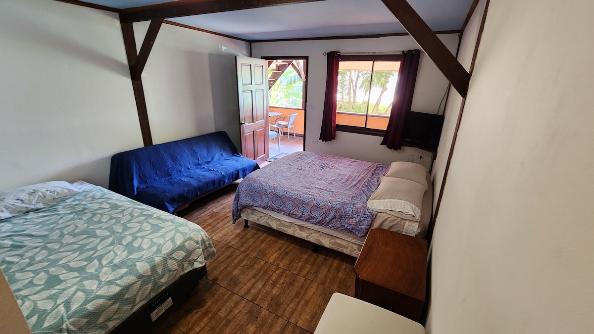 4つのプライベートオーシャンフロントルームがあり、すべてにモダンなアップグレードされたバスルームがあります。 エアコン付きのお部屋には、新しく快適なPillowsl Top Queenマットレスと綿の寝具が備わっています。 3人目の方のためのツインベッドもございます。 下の階には、冷蔵庫が備わったビーチを見渡す屋外キッチンがあります。 お部屋には小さな冷蔵庫もあります。 高速Wi-Fi、ケーブルテレビ、エアコンを備えています。 食料品店、レストラン、バーが1ブロック以内にあります。