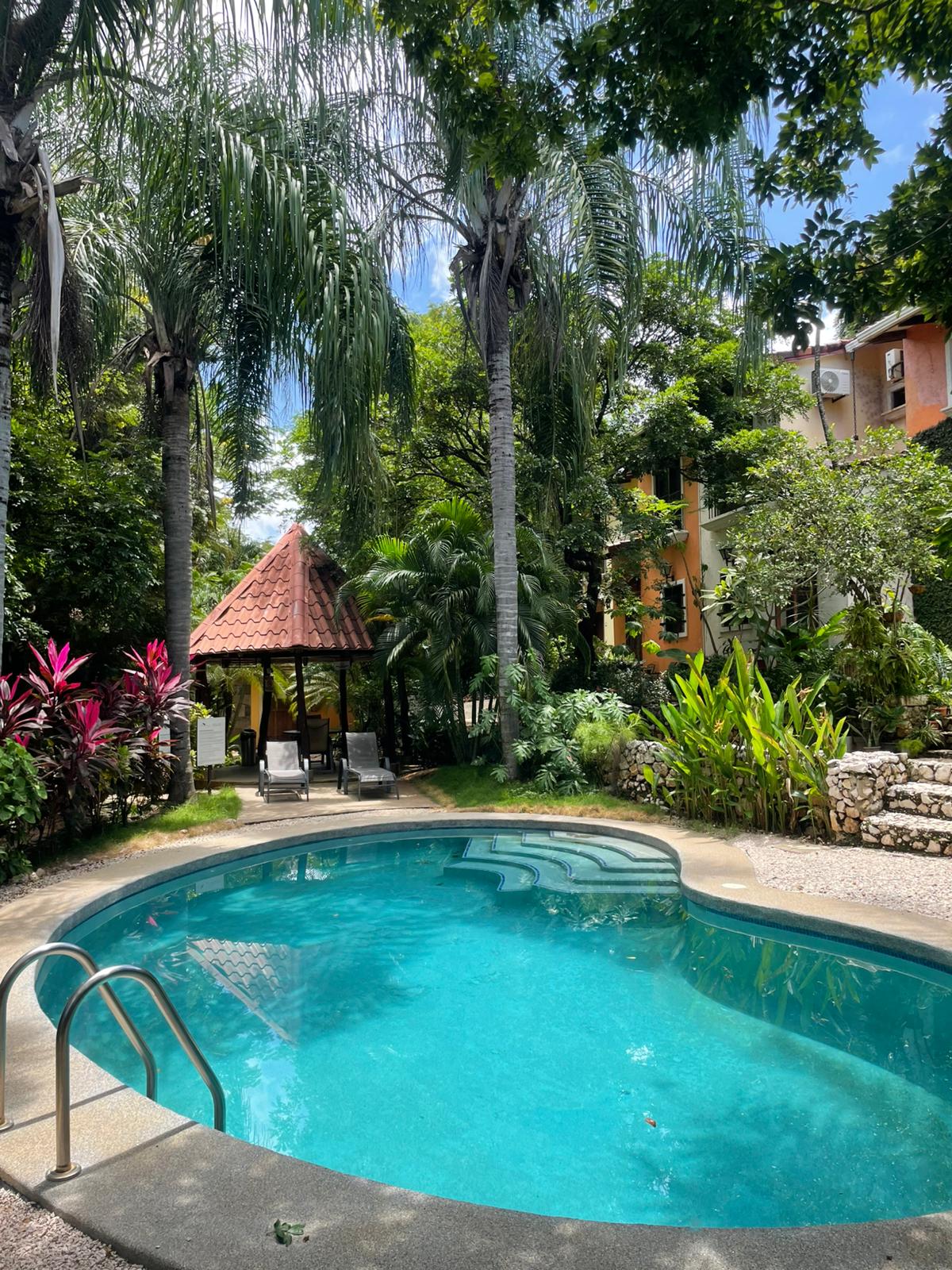 5-minute walk to Playa Peladas, local shops and restaurants and 20-minute walk to Playa Guiones. 1 BR, 1 BA, fully equipped granite-top kitchen, cooled by fans and AC. Living spaces open to private terraza with jungle garden view. Beyond there's a shared saltwater pool, rancho, grill, pizza oven, and outdoor shower. Two wireless internet providers, with power backup, perfect for remote working. We have 24/7 security, a water treatment system and a large back up water tank.