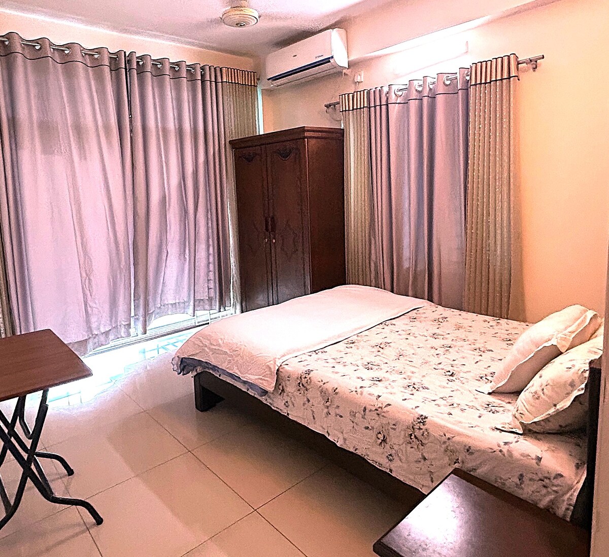 ダッカで夢のような滞在を!新しく家具が揃った3ベッドルーム、3バスルームのフラットには、全寝室にエアコンが備わっており、無料Wi-Fiもあります。新しいベッド、ソファ、テレビ、そして新しい食器類を含む設備の整ったキッチンで快適にリラックスしてください。アメニティ・設備:洗濯機、冷蔵庫2台、電子レンジ、ヘアドライヤー、アイロン、炊飯器。最高のロケーション:空港まで20分、モスクまで徒歩5分。近くに食料品店やレストランがあります(徒歩5分)。安全なエリア、無料駐車場。7人乗りの車を1日レンタルできます。