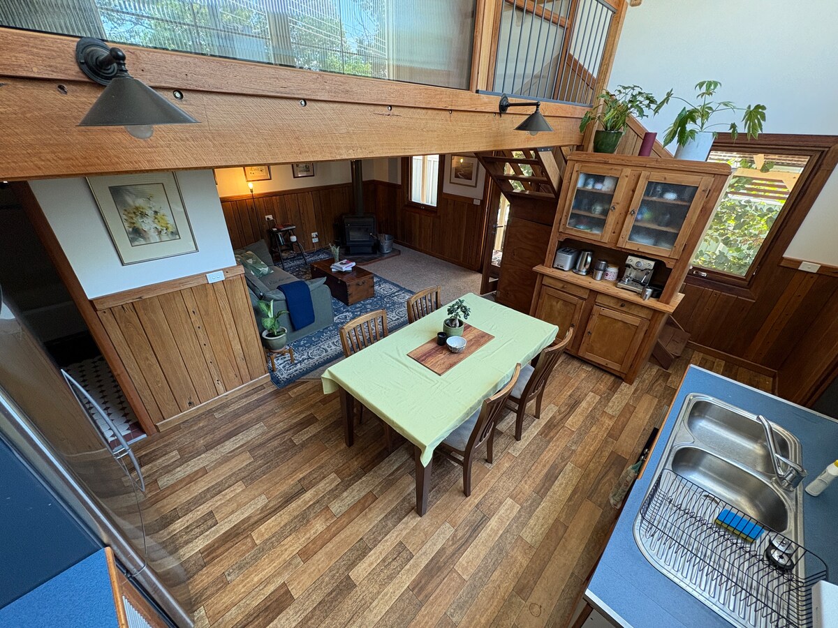A secluded self-contained cottage, hidden away behind the main residence and just on the edge of town. Best suited to a couple or quiet retreat for one. Light-filled open-plan living area with kitchenette, bedroom with ensuite. Private off-street parking. Additional services can be provided on request.