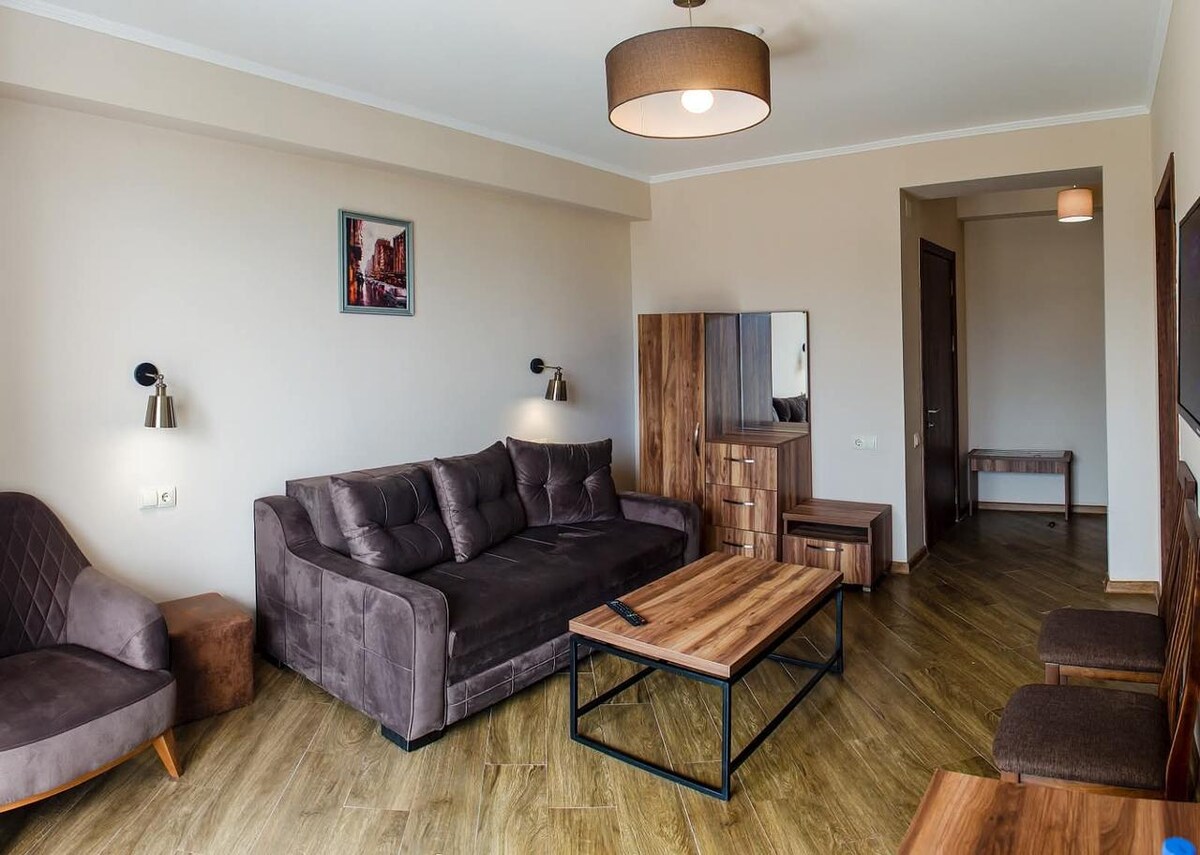 コブレティの日当たりの良いアパートへようこそ!清潔な黒海と広い砂浜と石畳のビーチ、松林、新鮮な海の空気、すべてのモダンな利便性、無料Wi - Fi、日光浴ができる巨大なテラス。 周辺の施設:自転車レンタル、地元と国際的な料理があるカフェ\レストラン、バトゥミやウレキマグネットサンドビーチから遠くない子供のための遊び場。周辺には温かくフレンドリーな雰囲気、ナイトクラブ、植物園など、すべてがすぐ近くにあります!ゆっくり休んで楽しみましょう!