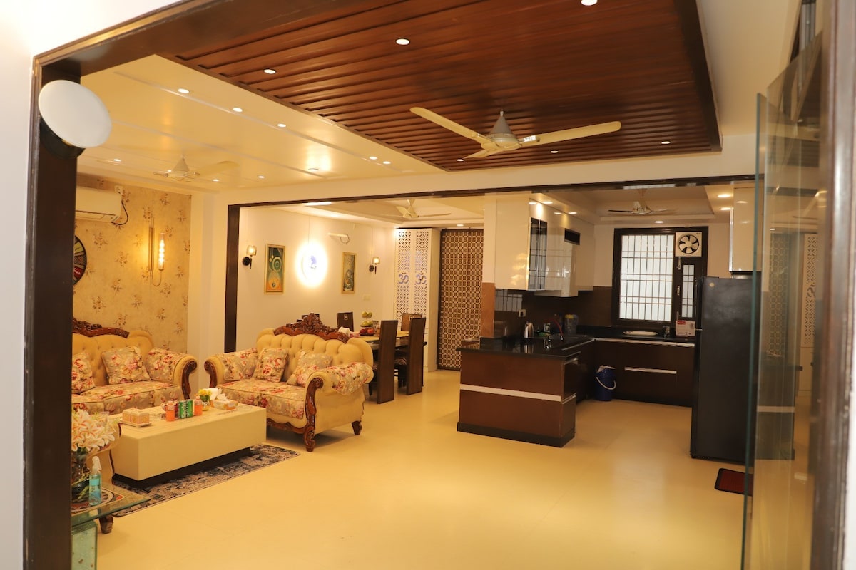 デリーの「The Aaki Palace」をお選びいただきありがとうございます。デリーNo.1の超豪華で広々とした宿泊施設です[210平方ヤード] 65インチの大型スマートテレビ、専用ダイニングエリア、設備が整った広々としたキッチンを備えた美しい広々としたリビングエリア ヤショブームから車で5分、高速道路と国際空港への直結、メトロ駅ドワルカセクター8 & 9へのアクセスが良好です。 過去5年間、デリーに5つ以上の支店を構え、ホスピタリティで高い評価を得ており、経験豊富です。