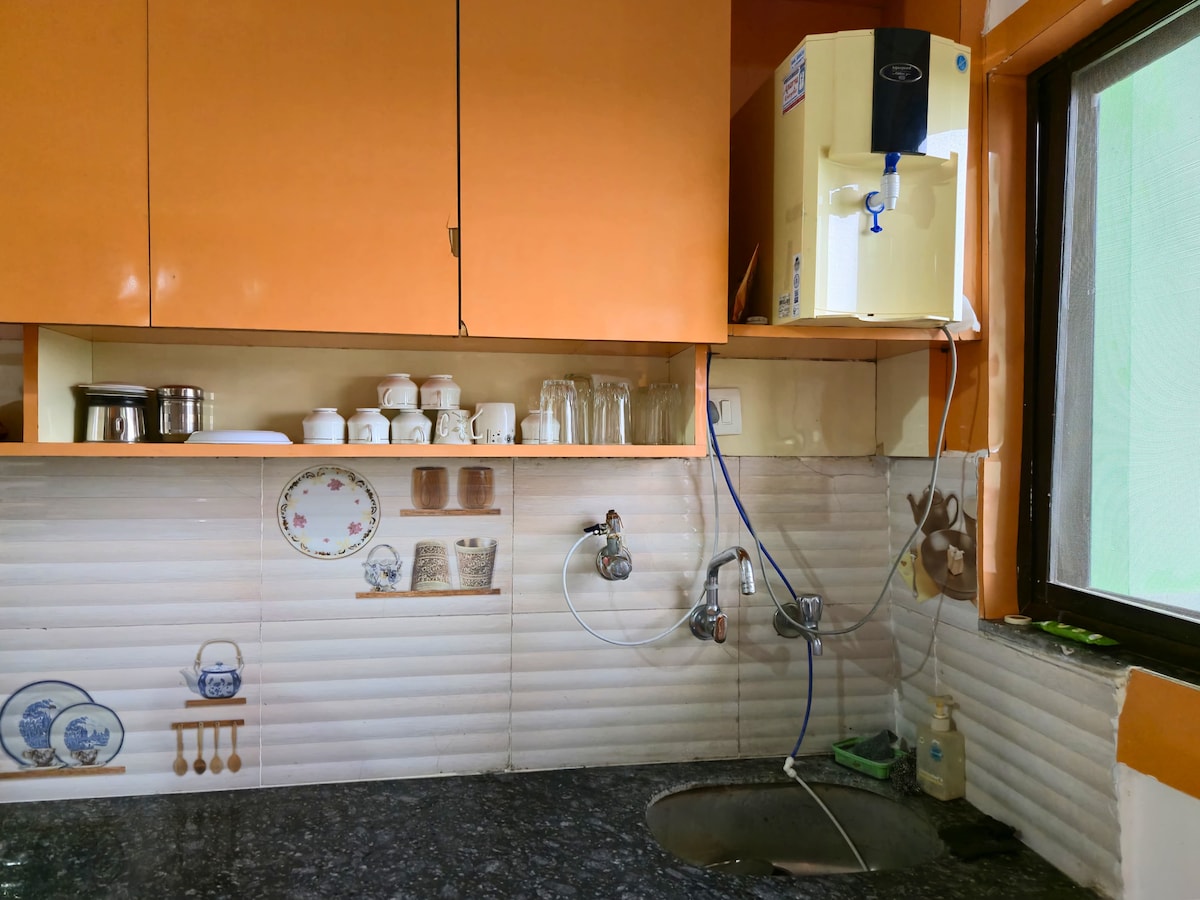 この広々とした穏やかな空間で、心配事を忘れましょう。 「中心部にある、ユニークで広々とした家で、家族連れやカップル向けの静かな滞在をお楽しみいただけます。快適さとリラックスを実現するように設計されたこのアパートメントは、主要な観光スポット、市場、レストランに近いにもかかわらず、落ち着いた雰囲気を提供します。快適で思い出深い滞在に最適です。」 キッチン家電は無料でご利用いただけます。 ガス代は追加で₹400、キッチンにはスパイス、油、その他の必需品がすべて揃っており、追加で₹500かかります。
