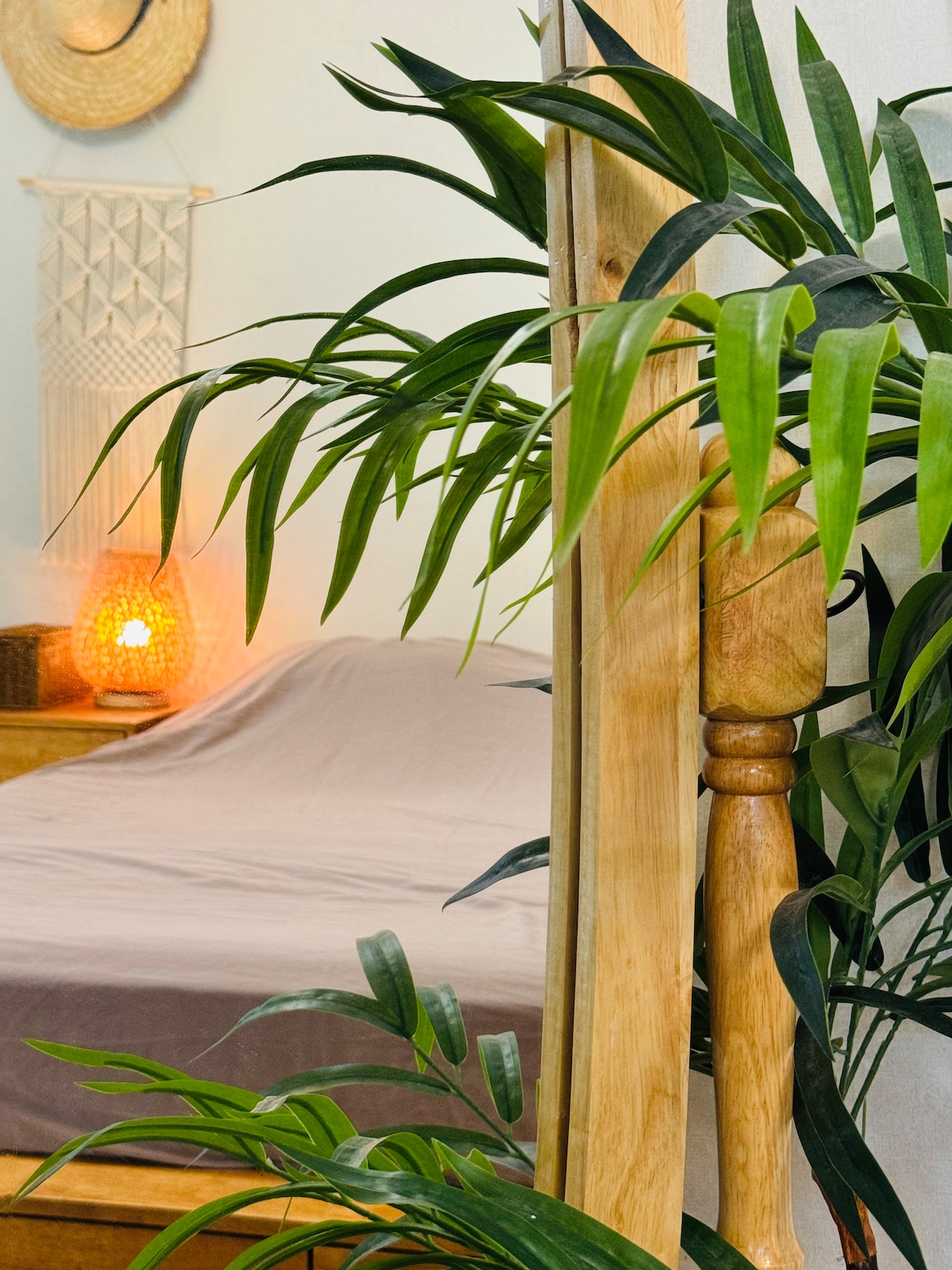 個人や家族が自然を感じながら過ごせる空間です。 一日中外で自然を感じ、休息を得ることができる空間。鳥のさえずりと高く伸びる大きな木、そして美しく整えられた庭を見ながら、心ゆくまで楽しめる休憩場所です。これまでに経験したことのない癒しを保証します。清潔なトイレ、クイーン1台、シングルベッド1台、十分な掛け布団とマットレスが備わっています。 冷暖房エアコン2台と大型エアーコンが備わっており、暖かく過ごすことができます また、田舎の家なので、セキュリティ上の理由からCCTVが外部に設置されています。