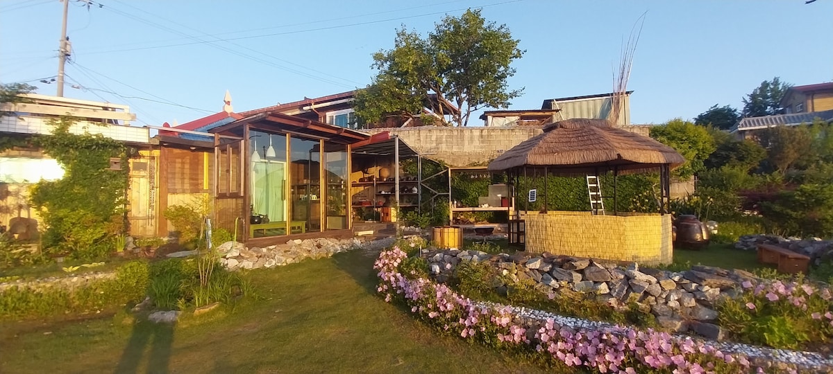 半橋石壁韓屋は貸切ペンションです。 国家登録文化財に指定されている扶余郡外山面半橋里石壁村に位置する静かな農村宿泊施設で、保寧と扶余の中間にあります。 千年考察無量寺は車で5分の距離にあり、国立中央博物館の館長であるユ・ホンジュン氏の休憩所が村の中にあります。 緑の山、田んぼ、野原に囲まれていて、家の前は開いているので、心地よい癒しの時間になるでしょう。 ☆☆ 普段はオーナーが住んでいる家です。ご予約の際には本館をきれいに空けておきますので、おばあちゃんの家に遊びに来たかのようにゆっくりとお休みいただければ幸いです。 ♤♤ 朝食、夕食をご希望の場合は、事前に(2日前)お申し付けください。田舎料理をご用意いたします。(追加料金が発生します)