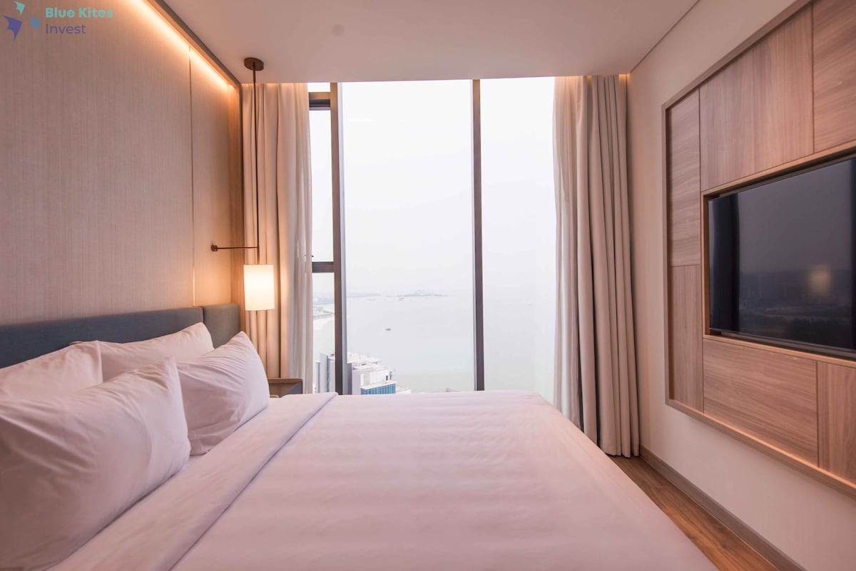 The Sapphire Ha Long â Premier Bayview Suite - Located in the S2-Sapphire Halong complex, right in the heart of Ha Long city. - Cozy & Elegant: Corner unit on the 27th floor, featuring 2 bedrooms & living area, all with stunning views. - Breathtaking Views: Step onto the balcony to enjoy sunrise over the bay and charming fishing ports. - Full Amenities: Aircon, Wi-fi, TV, fully equipped kitchen, swimming pool, and secure parking for a comfortable stay. Convenient: Near center city_5' to museum