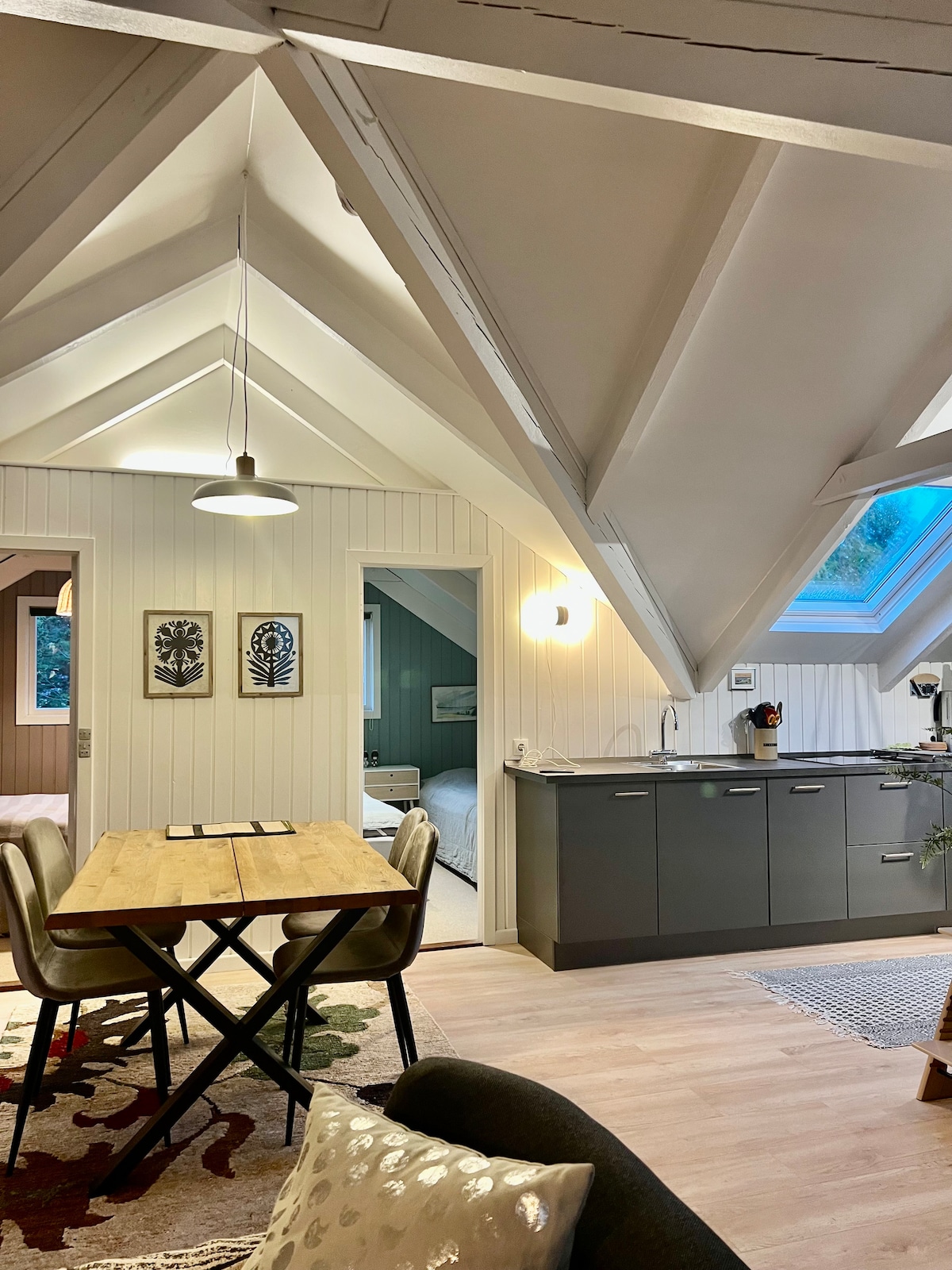 オレルップ湖の近くにある30m2の快適な別館。 2022年に建てられ、生のレンガの壁と木製の天井が非常に特別な雰囲気を醸し出しています。 2人または小家族に最適です。 リビングルームには140x200cmのベッドがあり、さらに2名の宿泊客が泊まれるロフトがあります。(シングルマットレス2枚)ロフトは立ち上がれる高さではありません。 専用の入り口、木製のテラス、オレルップ湖へのアクセスがあります。 チェックインは16:00から チェックアウトは12:00まで 時間が合わない場合はお問い合わせください。