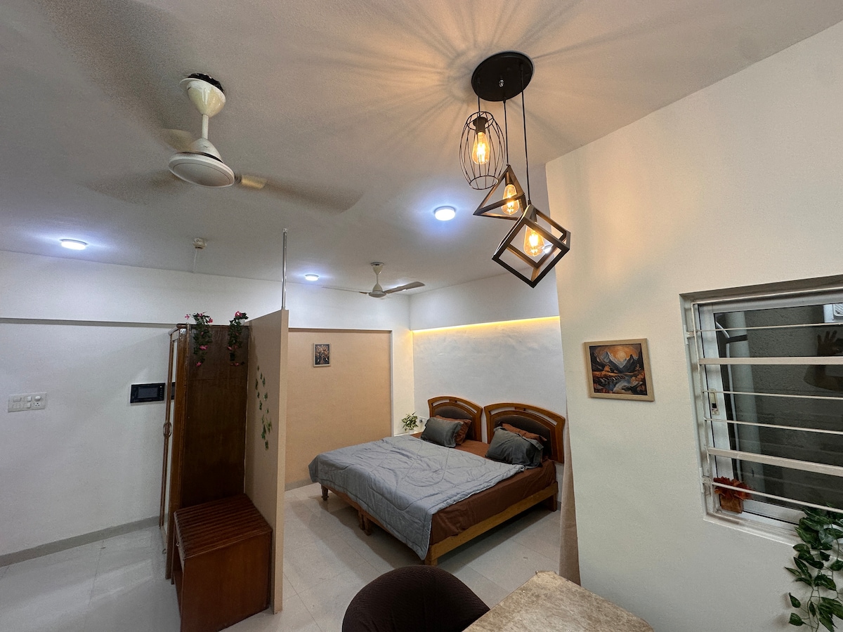 デザイン主導のスタジオ、Stillspaceへようこそ。ここでは落ち着きとインテリジェントな暮らしが融合しています。 照明は気分に合わせて変化し、音楽は部屋の中をそっと流れ、「おやすみなさい」と言うと家の電源が切れます。 細部までこだわったデザインで、都会生活を気楽に楽しめます。考え抜かれた、落ち着いた、静かな贅沢を満喫してください。 Alexa対応のスマートリビングで、シームレスな快適さを実現 快適なクイーンベッド、柔らかいリネン、厳選されたラウンジ コンパクトで設備の整ったキッチン 中心部に位置し、コレガオン公園、カリヤニ・ナガールのカフェ、ナイトクラブから数分