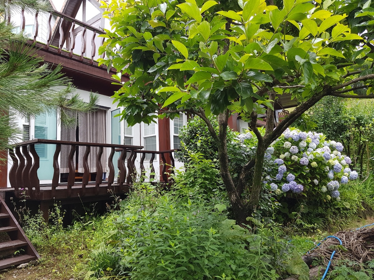 **コーヒーサービスを提供しています** ドイツ村の園芸芸術村の中にある木造住宅で建てられた平穏な宿泊施設で休息時間をお楽しみください。 石部庭園ペンションは、園芸芸術村の誕生とともに現在まで15年以上栽培された庭園に位置するペンションです。園芸芸術村は深い山の中に位置しているため、他の場所よりも涼しく、夏を過ごすのに最適な場所です。さらに、木造住宅の木々がもたらす快適さを感じることができます。 また、利用できるカフェスペースもあります。ペンションで運営されている「グリーンティーカフェ」は、豆腐の冷やし汁が美味しいことで有名です。韓国産100%の素材で作られた釜で手作りした手作りの紅豆汁は、ペンションの利用客なら誰でも味わうことができます:) **基本2名様(最大4名様) ** 4歳以上の人数を追加する場合は、20,000ウォンの追加料金がかかります。 **バーベキューが可能です(3名様20,000ウォン) 18: 00以降に宿泊施設に到着する場合は、事前にご連絡ください。