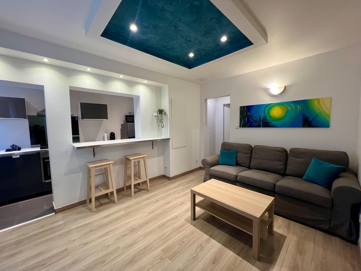 アンヌビルの理想的なロケーションにある50平方メートルの明るいアパート。温泉施設からすぐ近く。設備が整っており、モダンで快適な空間(洗濯機、ファイバーインターネット、Wi-Fi、テレビ、冷蔵庫、コンロ、電子レンジ、ネスプレッソマシン、バルコニーなど)を提供しており、ウェルネスや観光の滞在に最適です。広々としたリビングルーム、オープンキッチン、居心地の良いベッドルーム、機能的なバスルーム。ベビーサークルベッドとマットレスをご用意することも可能です。温泉施設に近いです。